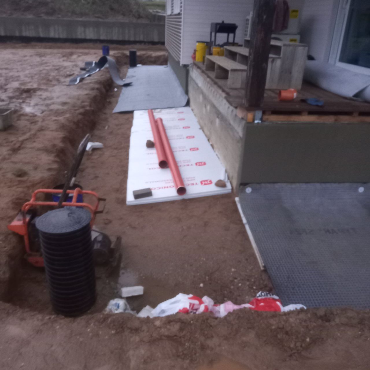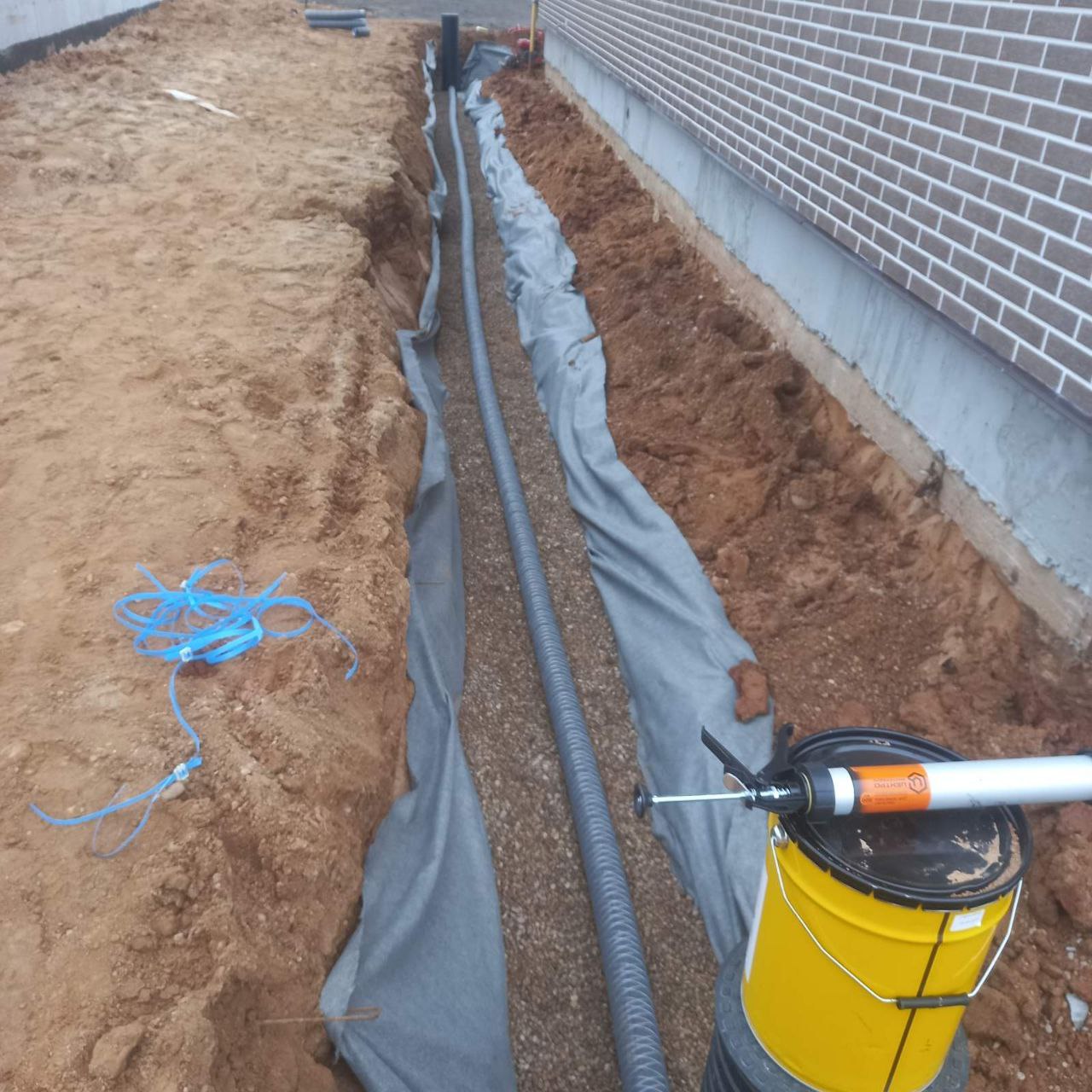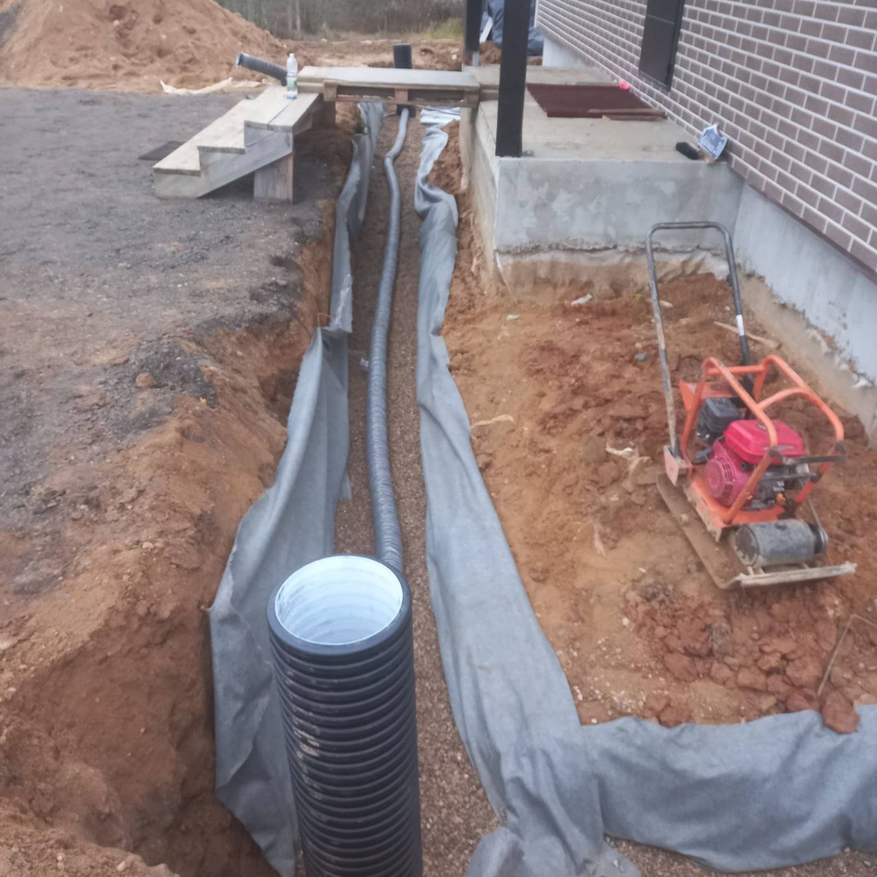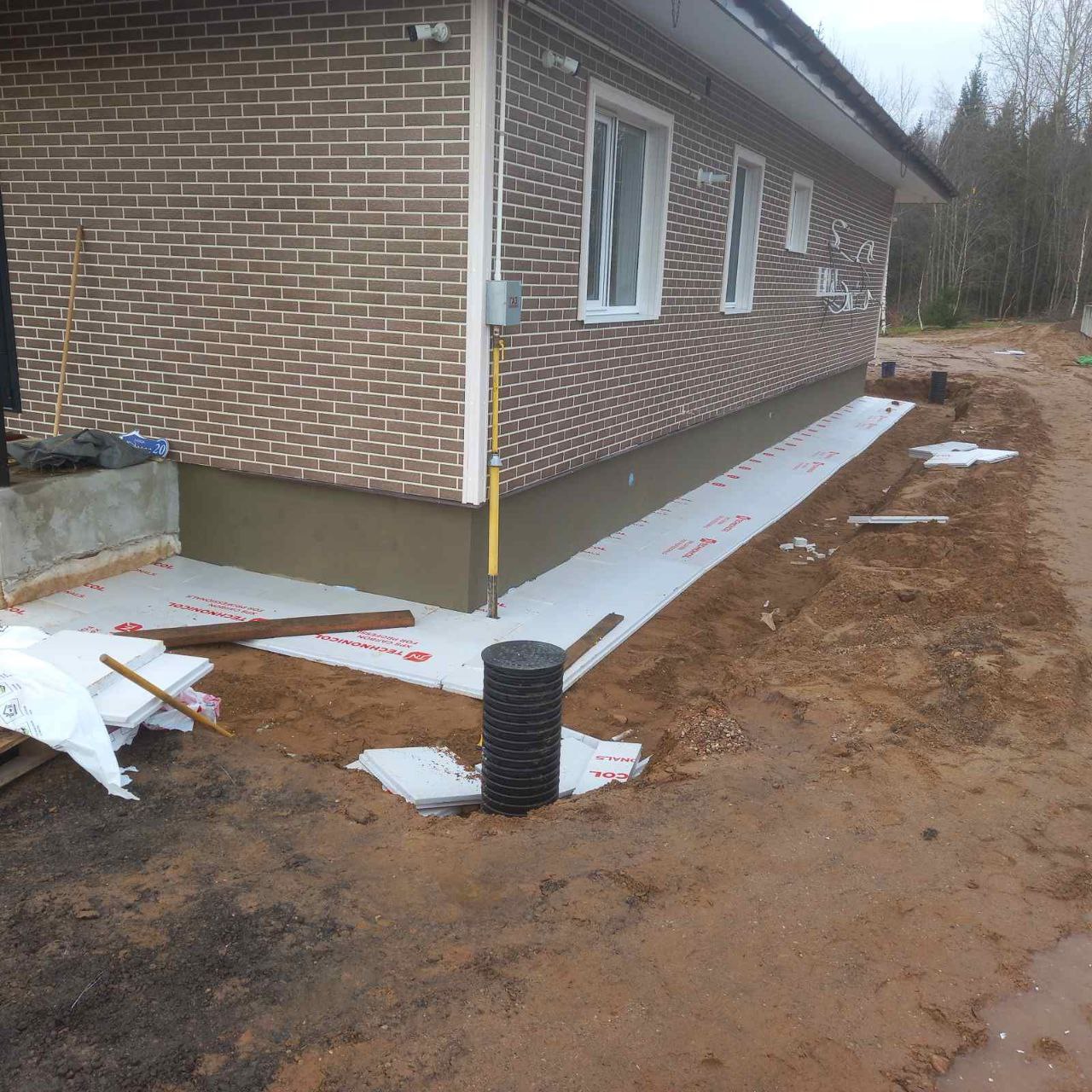 • Дренажная система: Устройство пристенного или кольцевого дренажа вокруг фундамента для отвода грунтовых и дождевых вод.