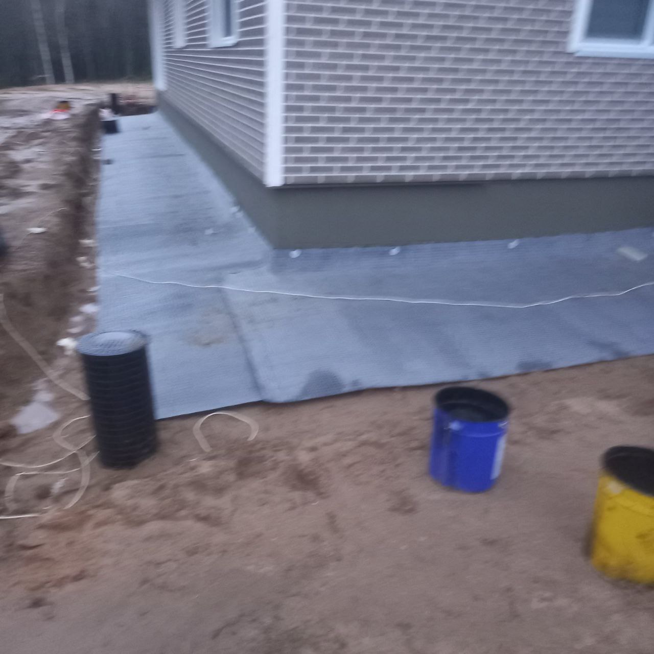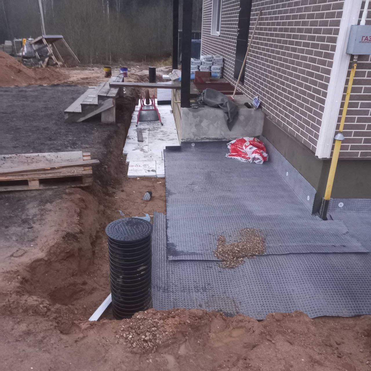 • Устройство отмостки (черновой): Первичная засыпка или заливка по периметру для отвода воды от фундамента.